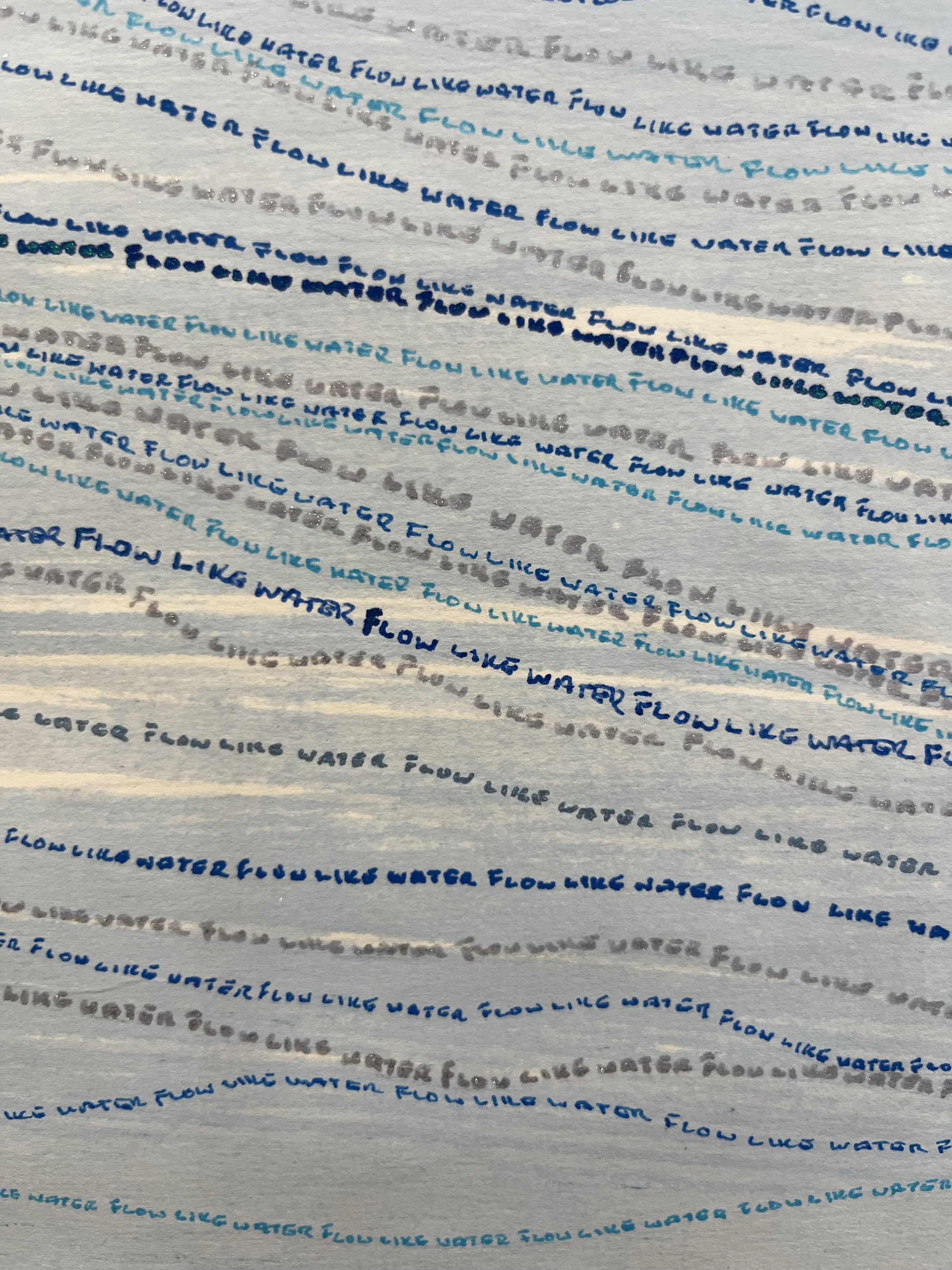 "Flow Like Water" - 2023 - Hand-written about 6,000 times. Ink on paper. (Sold)