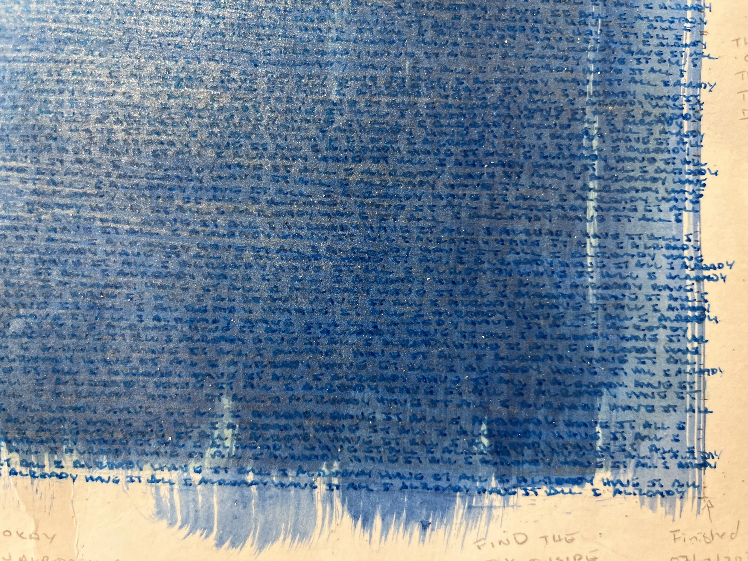 "I Already Have It All." (commission) - 2025 - hand-written about 1,500 times. Ink on paper. (Sold)